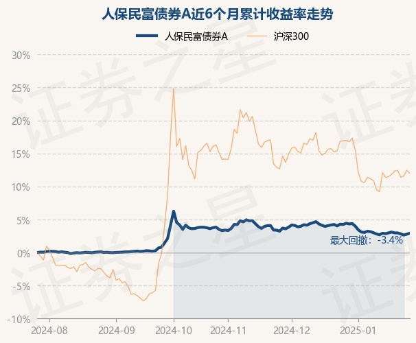 本站消息,1月27日,人保民富债券A最新单位净值为1.0247元,累计净值为1.0247元,较前一交易日上涨0.15%。历史数据显示该基金近1个月下跌1.35%,近3个月下跌0.81%,近6个月上涨2.91%,近1年上涨4.61%。该基金近6个月的累计收益率走势如下图: